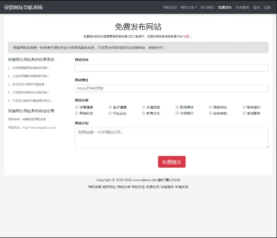 是一款免费开源的分类导航建站系统,支持免费发布、